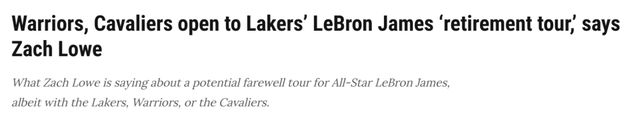 詹姆斯会考虑第三次加盟骑士,回到家乡球队吗?他能否在勇士王朝的尾声书写新的篇章?洛维在播客节目中透露了自己从NBA圈内消息渠道听到的说法。