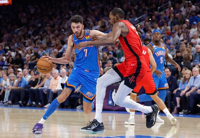 如果不犯规,怎么防亚历山大呢?亚历山大已经连续84场拿到20+,可以做到面对全联盟所有球队实现稳定降维打击。而休赛期拿了5年2.39亿顶薪合同的霍姆格伦,本赛季也做到场均20分9篮板的数据。他的篮板球保护包括三分球投射,都是被严重低估的。雷霆和其他崛起的年轻球队相比,他们最好的一点在于,阵容厚度太扎实了,所有人都能投三分,所有人都能防守,特别是亚历山大以身作则,三后卫+两内线的体系,以及小阵容的无缝切换,雷霆都没有明显短板,毕竟内线还有哈滕这个肉盾。