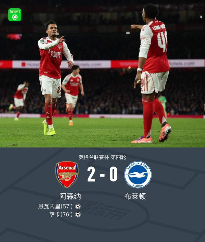 北京时间10月30日,英格兰联赛杯第四轮展开角逐,阿森纳迎战布莱顿。比赛中,刘易斯-斯凯利送出助攻,帮助恩瓦内里率先打破僵局。随后,萨卡再下一城,为球队扩大领先优势。最终,阿森纳以2比0战胜对手,顺利晋级下一轮。