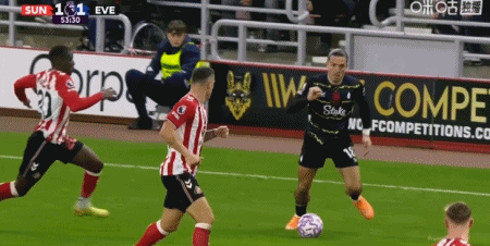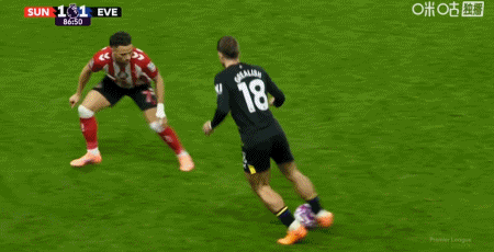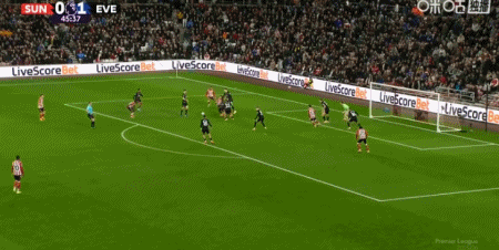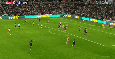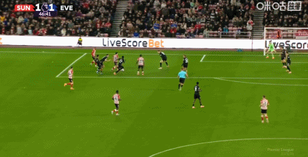 第46分钟,勒费埃回传,扎卡弧顶处低射破门扳平比分,桑德兰1-1埃弗顿